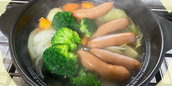 次にウィンナーソーセージとブロッコリーを入れたら2〜3分煮て・・