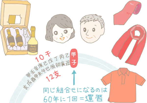 この組み合わせは60通りあって60年で1サイクル、これが還暦の由来となっています!