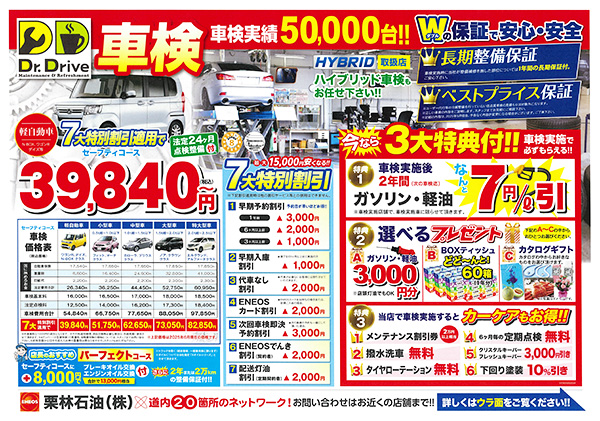 栗林石油の車検には実はお得な割引や車検実施特典など、お得がたくさんあるのです!