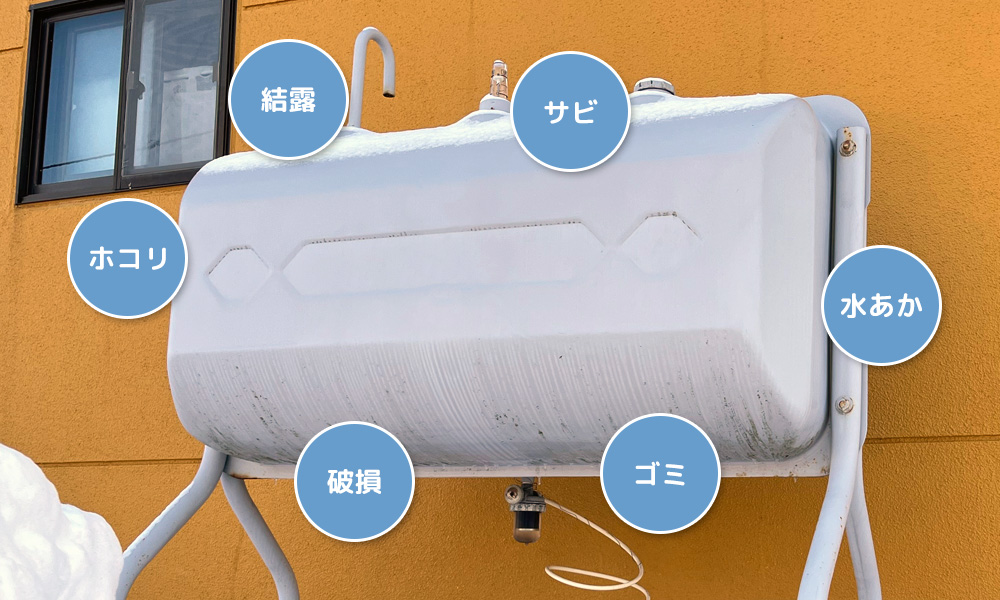 ホームタンクの内部には、年数が経つにつれて結露による「水分」や、ホコリ・サビなどが混ざった「スラッジ(汚れの沈殿物)」が蓄積していきます。